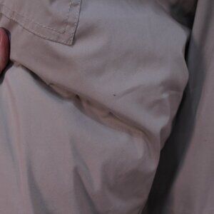 Durable khaki jacket with multiple pockets. Adjustable features for comfort. Ideal for field activities. Note small spots in photos..