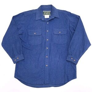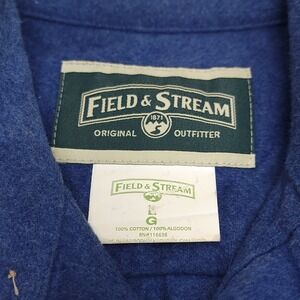 Field & Stream Long Sleeve Shirt Mens L Blue Pocket Button Flannel Heavy Cotton
