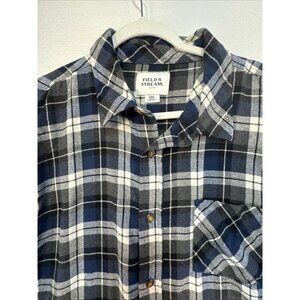 Field & Stream Mens Flannel Button Down Shirt Size 2XL Blue Gray Plaid