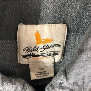 Field & Stream Mens Flannel Shirt Button Down Chest Pockets Cotton Plaid Gray L