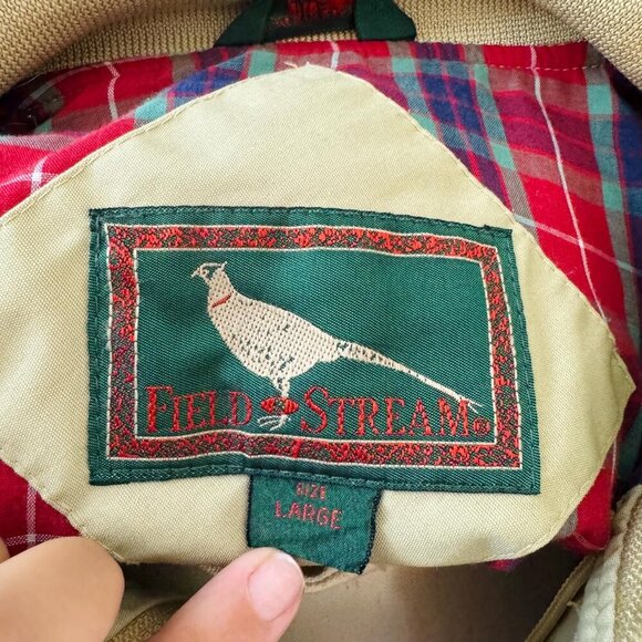 Field & Stream Mens Large Khaki jacket light plaid outerwear coat windbreaker