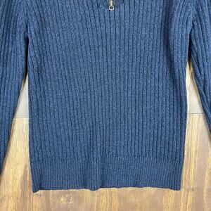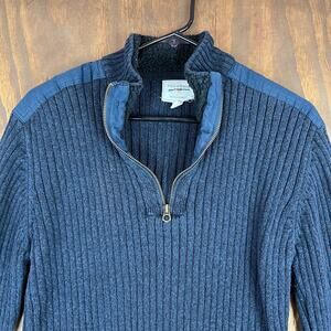 Field & Stream Mens Sweater Blue Heavy Knit Reinforced Shoulders 1/4 Zip Large