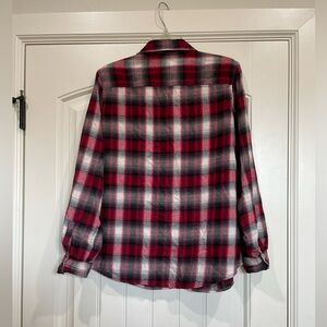 Stylish plaid blouse. Button-up front. Long sleeves. Perfect for casual wear. Women’s large.