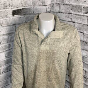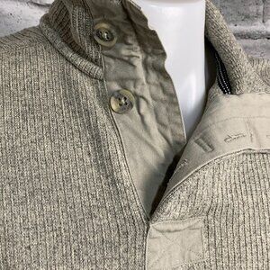Field & Stream Sweater Henley Men L Grey Ribbed Chunky Knit Mock Neck 1/4 Button