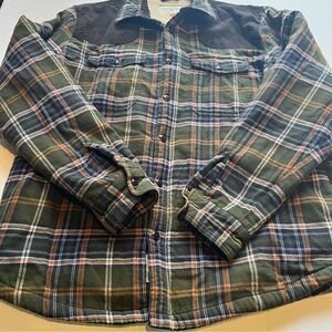 Field & Stream Men's Flannel Jacket Sherpa Lined Full Button Green/Blue Plaid XL