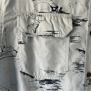 Field & Stream Men’s Short Sleeve Button Down Fish Print Shirt. Size Large. Two front velcro closure pockets. Light Blue. Excellent used condition!