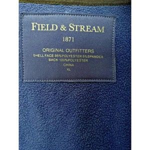 Field and Stream Mens Rain Jacket Size XL Navy Blue with Black Trim Neoprene Feel to jacket Fleece Lining Zip Up Great for any out door activity Pit to Pit is 26" Sleeves 26" Has zippered pockets on side and a pocket on one sleeve