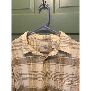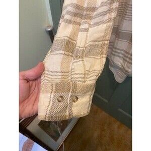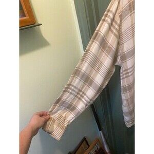 FieldMaster Men's Size L Beige Plaid Cotton Button-Up Long Sleeve Flannel Shirt