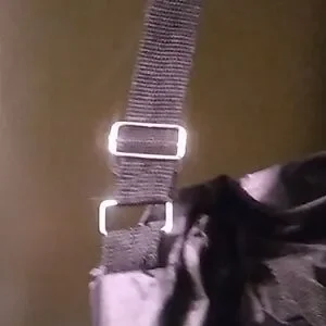 Pre-owned in good used condition. Black bag with an adjustable shoulder strap and a second set of handles. Has net pockets on the end and two zip closure pockets on the side with a small net pocket in between the side pockets. No lining issues. The bag is approximately 16 inches long, 10 inches tall and 5 inches wide.