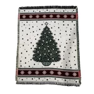 Fieldcrest? Christmas Tree Red Green Woven Tapestry Throw Blanket 50’ X 60’