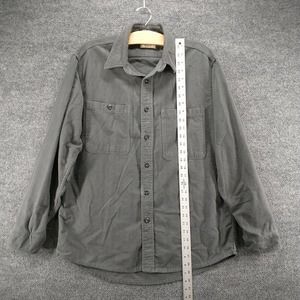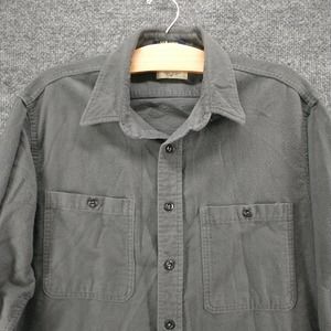 Fieldmaster Men's Flannel Button-Up Shirt Gray Large Long Sleeve Chest Pockets