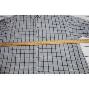 Fieldmaster Men's XL Blue Gray Check Plaid Button-up Shirt Linen Blend Pocket SS
