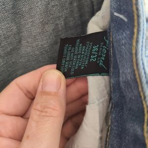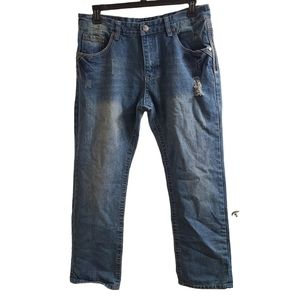 Fiend Denim Co. Light Wash Distressed Straight Leg Heavy Stitching Jeans 36 x 32