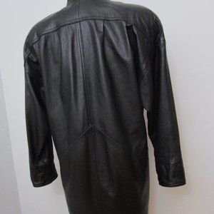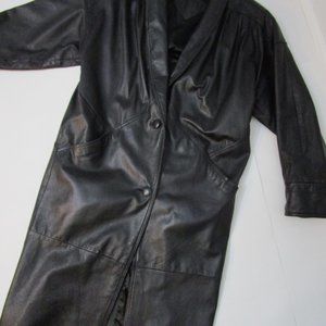 Fierce Black Leather 80s Duster Coat Oversized Wedge Korea Outerwear