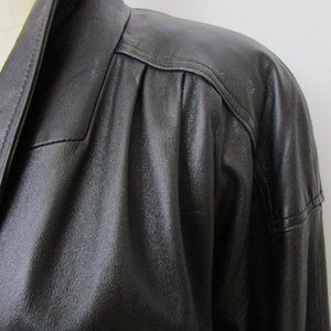 Size: Labeled S petite. Shoulder and armhole are 1980s huge and will fit M and L if worn open. Bust- 43", across hem- 42", Total length-44", across shoulder- 26-1/2", sleeve length- 32-1/2".