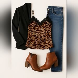 Unleash your inner wild with this sultry leopard print cami! Crafted from silky satin with a flattering drape, this statement piece features delicate black lace trim along the neckline and adjustable straps for a custom fit.