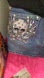 longer 4" inseam, skull / bone stitch embellished in rhinestones on 5 pocket denim shorts