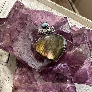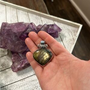 Fiery Flash Labradorite Larimar 925 Sterling Silver Plated Pendant blue green Gorgeous multi gemstone pendant, rainbow fiery flash accented with silver.