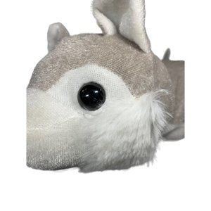 Adorable fiesta 12 inch lay down husky. This plush is in great shape with no stains or defects noted. The eyes are black plastic and attached with no scratches. Noted the nose is plush and in good shape.