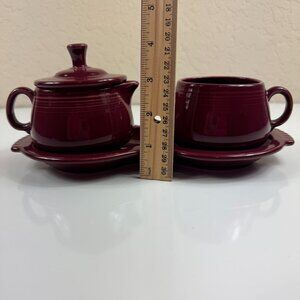 Fiesta Ware 4 Piece Sugar Bowl Creamer Set w/Tray Cinnabar Retired Serveware