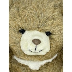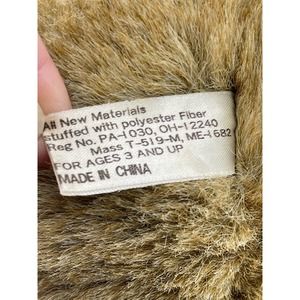 Vintage Fiesta American Wego Brown Tan Cream Plush Teddy Bear 1991 approximately 14". Plush is in near excellent condition. The only issues I see is it looks like a piece of black string is missing from the bottom of the left foot. Almost didn’t realize it at first. I did include a close up. Also there is a very subtly scuff on the nose. (Close up shown). The tushy tag is intact - no fading noted.