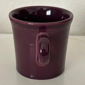 Fiesta mug in dark purple. My best guess it that it is the Fiesta mulberry color, but I don't guarantee my Fiesta color designations. Measures 2 inches tall and 4 inches in diameter. In excellent condition and rarely if ever used. There are many, many Homer Laughlin Company Fiestaware pieces for sale in my closet. Check them out--bundle and save. I will consider bundles under 5 pounds (including box and packing materials); otherwise, there is a pricey overweight charge to the seller for extra postage. If you put items in your bundle, I'll weigh them and let you know if they are over. Thank you!