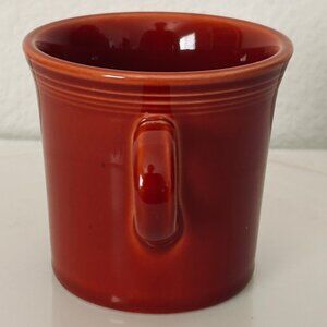 Fiesta coffee mug. It is an orange brown, and my gest guest is that it is the Fiesta paprika color, but I don't guarantee my Fiesta color designations. In excellent condition and rarely used. There are many, many Homer Laughlin Company Fiestaware pieces for sale in my closet. Check them out--bundle and save. I will consider bundles under 5 pounds (including box and packing materials); otherwise, there is a pricey overweight charge to the seller for extra postage. If you put items in your bundle, I'll weigh them and let you know if they are over. Thank you!