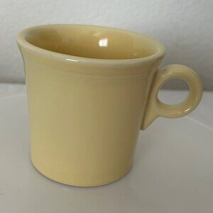 Fiesta yellow coffee mug. This is the lightest Fiesta yellow, but I do not guarantee my Fiesta color designations. In excellent condition and rarely if ever used. There are many, many Homer Laughlin Company Fiestaware pieces for sale in my closet. Check them out--bundle and save. I will consider bundles under 5 pounds (including box and packing materials); otherwise, there is a pricey overweight charge to the seller for extra postage. If you put items in your bundle, I'll weigh them and let you know if they are over. Thank you!
