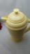 Vintage 1980/90's Fiesta Genuine Fiesta Accessories Authorized Licensee of The Homer Laughlin China Co. by Copco/A Wilton Industries Company pale yellow plastic with blown glass vacuum bottle inside tall coffee carafe. Introduced in 1989. 12" tall, 5" base diameter, and about 9" across spout to handle. 32 ounce capacity. Top button opens and closes the spout. In great condition for age with only minimal wear.
