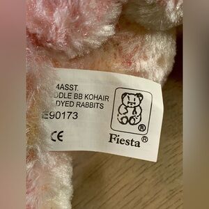 This Fiesta Cuddle Plush Tie-Dyed Rabbit is a must-have for any occasion! Its colorful and cute design makes it perfect for baby showers, birthdays, Easter, and other holidays. The bunny is small in size, measuring 11 inches from ear tip to toe and is multicolored.