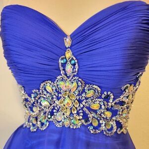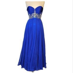 Fiesta Fashion Blue Strapless Beaded Corset Long Gown Prom Dress Size Xsmall