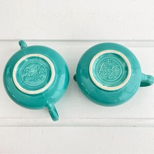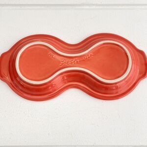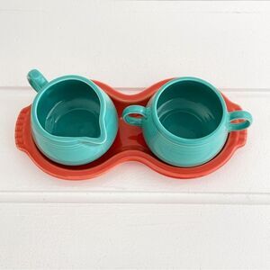 Fiesta Fiestaware Persimmon Figure 8 Tray With Turquoise Cream & Sugar Bowls