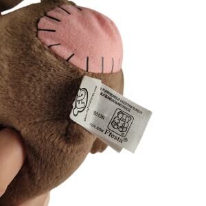 Fiesta Furrybones plush, featuring a skeleton face character in a brown monkey suit with a red scarf. Measures about 9 inches tall. Soft polyester plush with embroidered details. Great collectible plush for Furrybones and Fiesta fans.