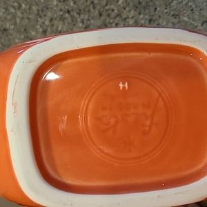 Orangeish peach color. No chips or cracks
