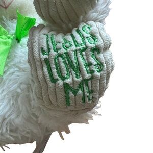Fiesta Scruffy Lamb Sheep Bow Jesus Loves Me Soft Plush Stuffed Animal Toy White
