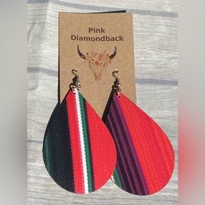 Fiesta Serape Southwest Western Handmade One Of A Kind Lure Tear Drop Earrings