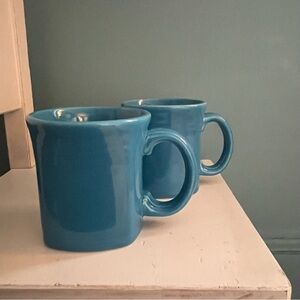 Fiesta Square Mugs (2), Made in USA, Vintage. Peacock Blue
