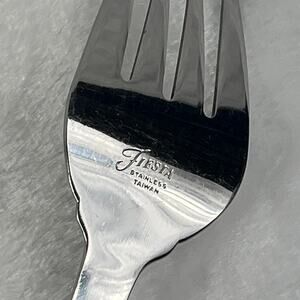 Fiesta Stainless Serving Fork Pink Handle Taiwan Vintage 9" Swirl Design