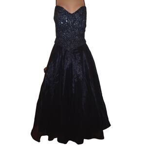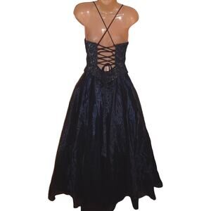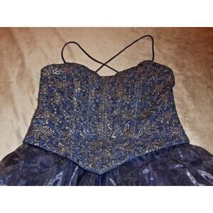 Fiesta Woman's Small Navy Blue Embroidered Corset Back Prom Formal Gown Dress