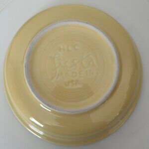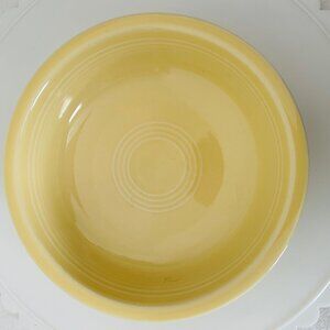 Fiesta yellow soup or cereal bowl. This is the lightest Fiesta yellow, but I do not guarantee my Fiesta color designations. Measures 7 inches diameter and 2 inches tall. In excellent condition and rarely if ever used. There are many, many Homer Laughlin Company Fiestaware pieces for sale in my closet. Check them out--bundle and save. I will consider bundles under 5 pounds (including box and packing materials); otherwise, there is a pricey overweight charge to the seller for extra postage. If you put items in your bundle, I'll weigh them and let you know if they are over. Thank you!
