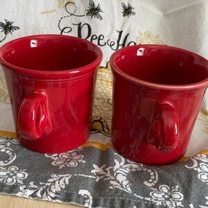 FiestaWare Scarlet Red ORing (keyhole) Handle Coffee Mugs Cup, 1 Set EUC
