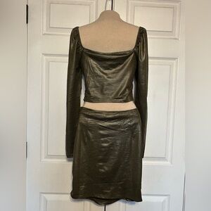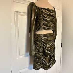 Fiestar 2-piece Army Green Ruched Bodycon Crop Top Skirt Party Outfit Medium