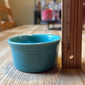 Fiestaware Turquoise Ramekin. Approx 4” wide x 2” deep.