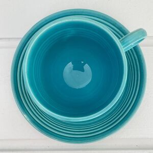 Fiesta Fiesta Vintage Original Turquoise Glaze Teacup and Saucer Circa 1937-1959