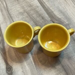 Two Fiestaware Sunflower yellow ceramic coffee mug. Gently used but in great condition. This is the lighter color yellow, not the marigold color which is more of a mustard yellow.