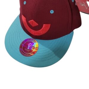 Color: Burgundy (Crown) & Turquoise (Brim & Eyelets)