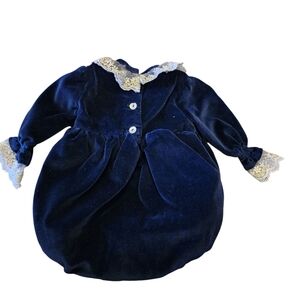 Fifi & Finn Navy Velvet Romper Gold Lace Bow Size 3 Months