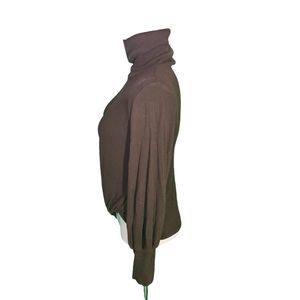 Fifteen Twenty Brown Ribbed Twist Front Turtleneck Top Soft Asymmetric sz XS