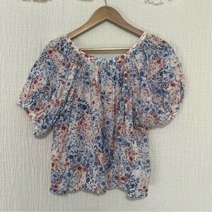 Fifteen Twenty Floral Short Puff Sleeve Button Up Peasant Top Size XS