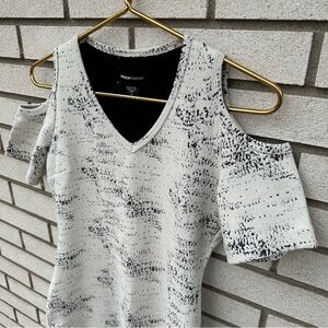 Fifteen Twenty Jacquard Knit Short Sleeve Cold Shoulder Fitted Dress